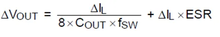 在 Buck 稳定工作期间,电感电流的平均值与负载电流相等,那些高于负载电流的部分将流入输出电容,因而会使输出电压升高;那些低于负载电流的部分就需要电容储能流出来予以弥补,因而会使输出电压降低。在这样的一个周期中,输出电压将要发生用下述公式所表达的变化: