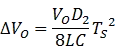 在 Buck 稳定工作期间,电感电流的平均值与负载电流相等,那些高于负载电流的部分将流入输出电容,因而会使输出电压升高;那些低于负载电流的部分就需要电容储能流出来予以弥补,因而会使输出电压降低。在这样的一个周期中,输出电压将要发生用下述公式所表达的变化:
